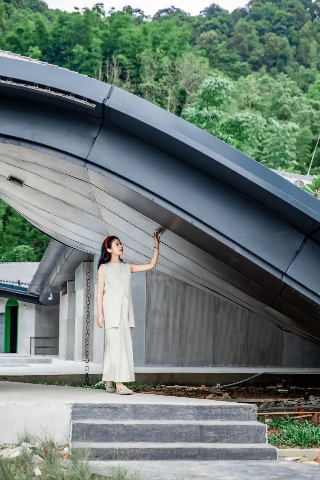 白墙青瓦搭配竹海,非常养眼