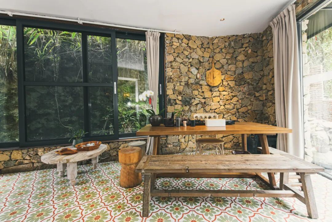 民宿依溪流与瀑布而立